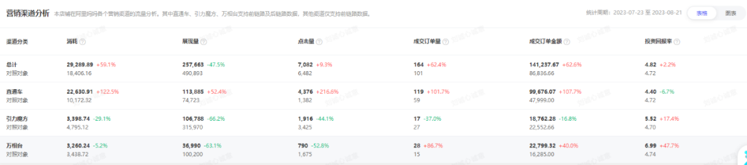 “在今年上半年,推薦流量增長(zhǎng)趨勢(shì)明顯,結(jié)合店鋪競(jìng)品流量分析以及店鋪?zhàn)陨砬闆r,我們?cè)诮邮趾竺嬲{(diào)整店鋪流量結(jié)構(gòu),在保持原有的搜索流量不變的情況下,細(xì)分推薦板塊流量計(jì)劃,為店鋪帶來(lái)新的品類機(jī)會(huì)。”