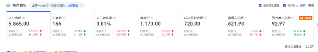 1.付費(fèi)板塊投入不大,只做了付費(fèi)的直通車引力魔方基礎(chǔ)模塊 店鋪新客成交少;