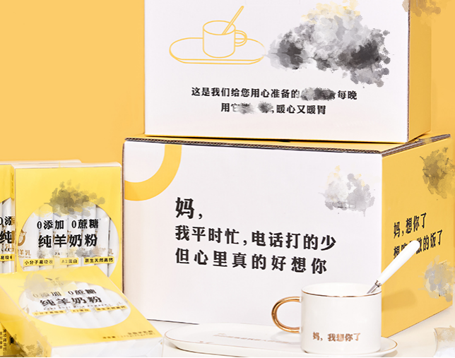 ‘媽,我想吃你做的飯了’‘媽,我平時忙,電話打的少,但心里真的好想你’‘爸,注意身體’,南空(花名)提到,在產品外包裝上,它印有很多的暖心文案,讓產品替用戶說話,進一步強化情感價值,增強用戶對產品的親和度。