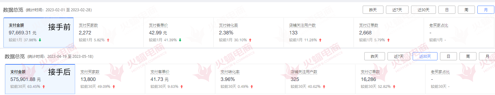 ▲接手前后店鋪GMV變化。圖/火蝠電商。